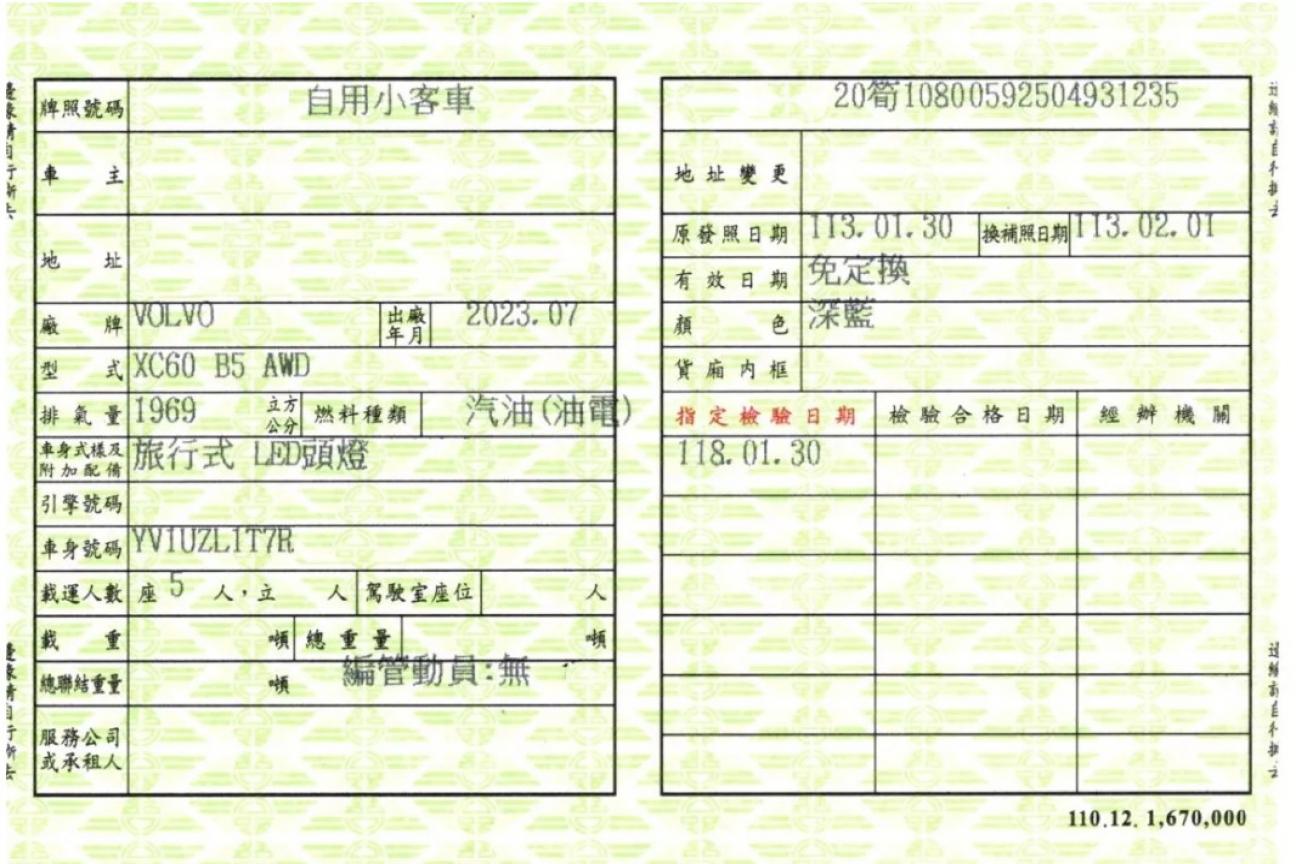 - 領牌年月2024.01